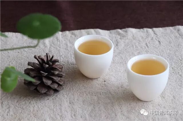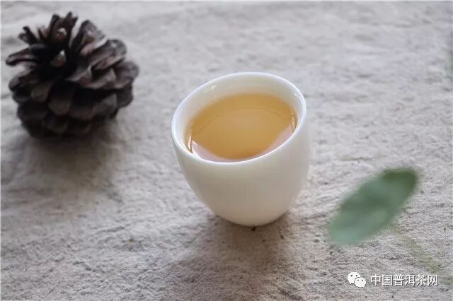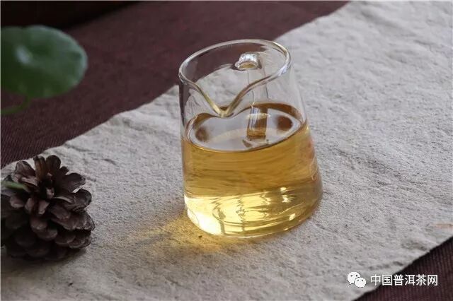 洗茶1遍,注水間青香揚起;出湯,湯色淺黃明透,公道杯底掛香明顯,呈蜜香。