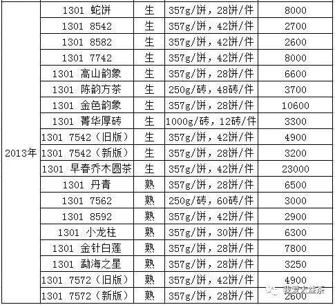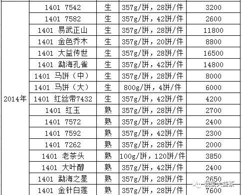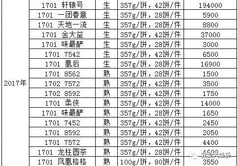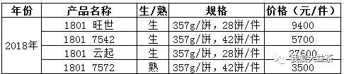 大益普洱茶每周報(bào)價(jià)(2018.05.05)