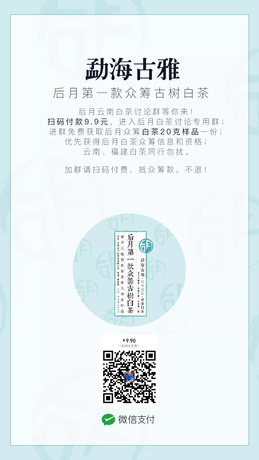 2,如果認可茶品質(zhì),需再付款999元,9月20號左右可查看眾籌方案,具體請隨時關(guān)注后月眾籌微信群;