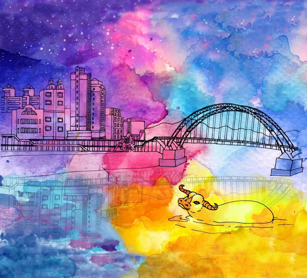 “金牛仙渡“一畫,將神話故事重現(xiàn)在了人們眼前——璀璨的星空下,金牛正在江中泅渡,金牛身后是已經(jīng)建立了高樓大廈的梧州城區(qū),當(dāng)年的仙人已無(wú)法尋覓,只有浩浩江水依然奔騰。