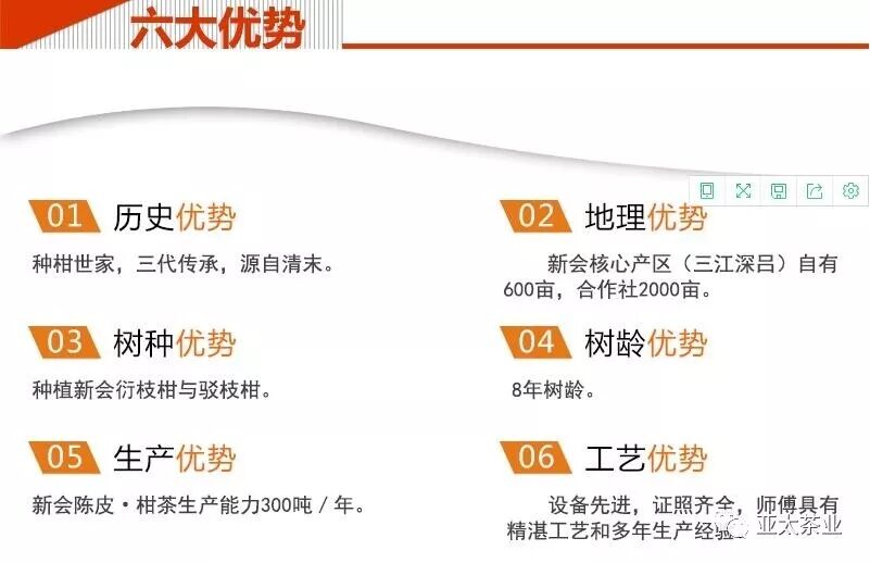 公司一直秉承“誠信為本”的古訓(xùn),以“金般品質(zhì)、百年承諾”為經(jīng)營理念,以”打造中國陳皮柑普第一品牌、弘揚(yáng)國飲“為目標(biāo)。2010年在廣東新會重新建立了自己的生產(chǎn)基地——新會僑一茶業(yè)有限公司。茶選用上等原料并采用獨(dú)特的加工工藝,以其“湯清、味濃,入口芳香,回味無窮”的特色,深得國內(nèi)外茶客的歡迎,使得老字號新會陳皮蜚聲海內(nèi)外。已經(jīng)成功實(shí)現(xiàn)產(chǎn)、供、銷、研一體化目標(biāo)。