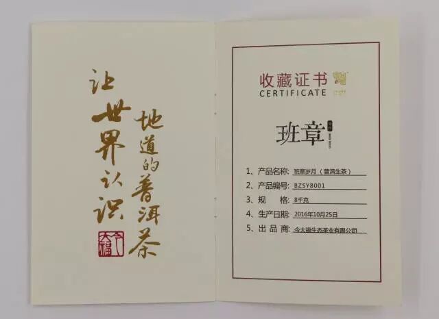 “謹以此100克小茶磚,紀念我的二十年班章歷程,還原班章本味。”