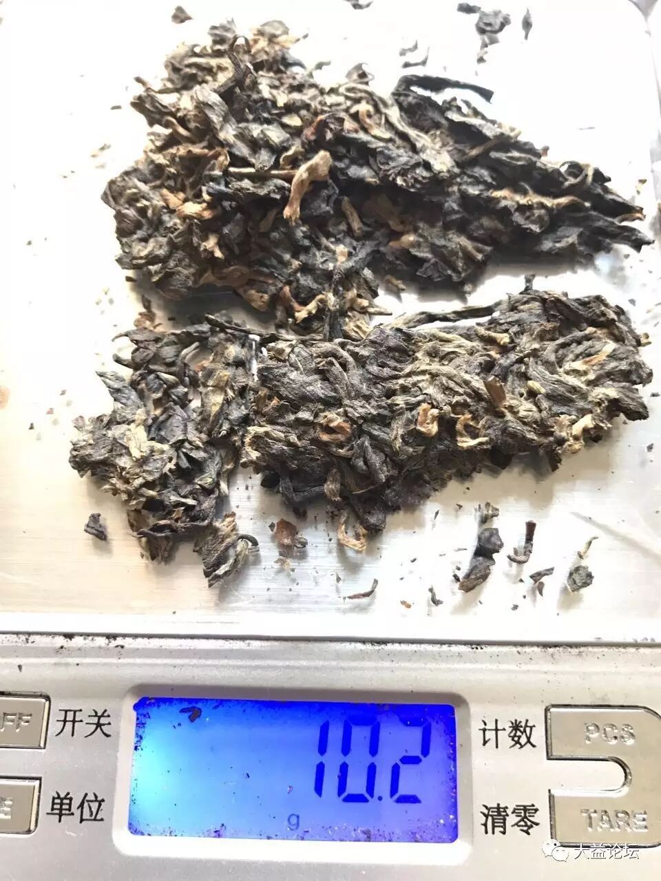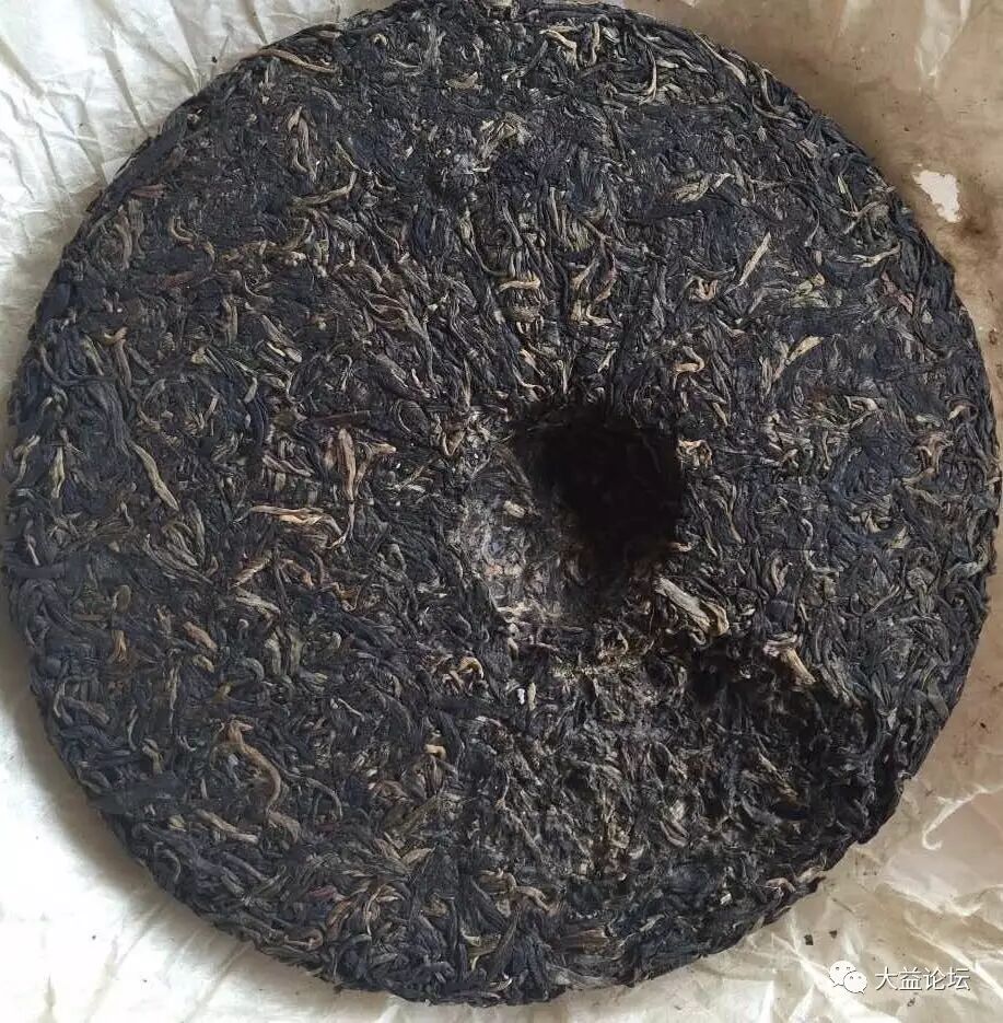 脫掉外包后,一位身材健碩的肌肉猛男彈入眼球,十三年的陳期并沒有給他增添一絲一毫的贅肉,那烏黑油亮的餅身夾帶著班章金芽的閃閃光芒,猶如一位渾身涂油在臺上演出的健美先生,這個顏值,我只能說:“威武!”,這也印證了何家人的多次口述-----“在00至04菜鳥班章系列中,04年的制茶工藝最為成熟”。