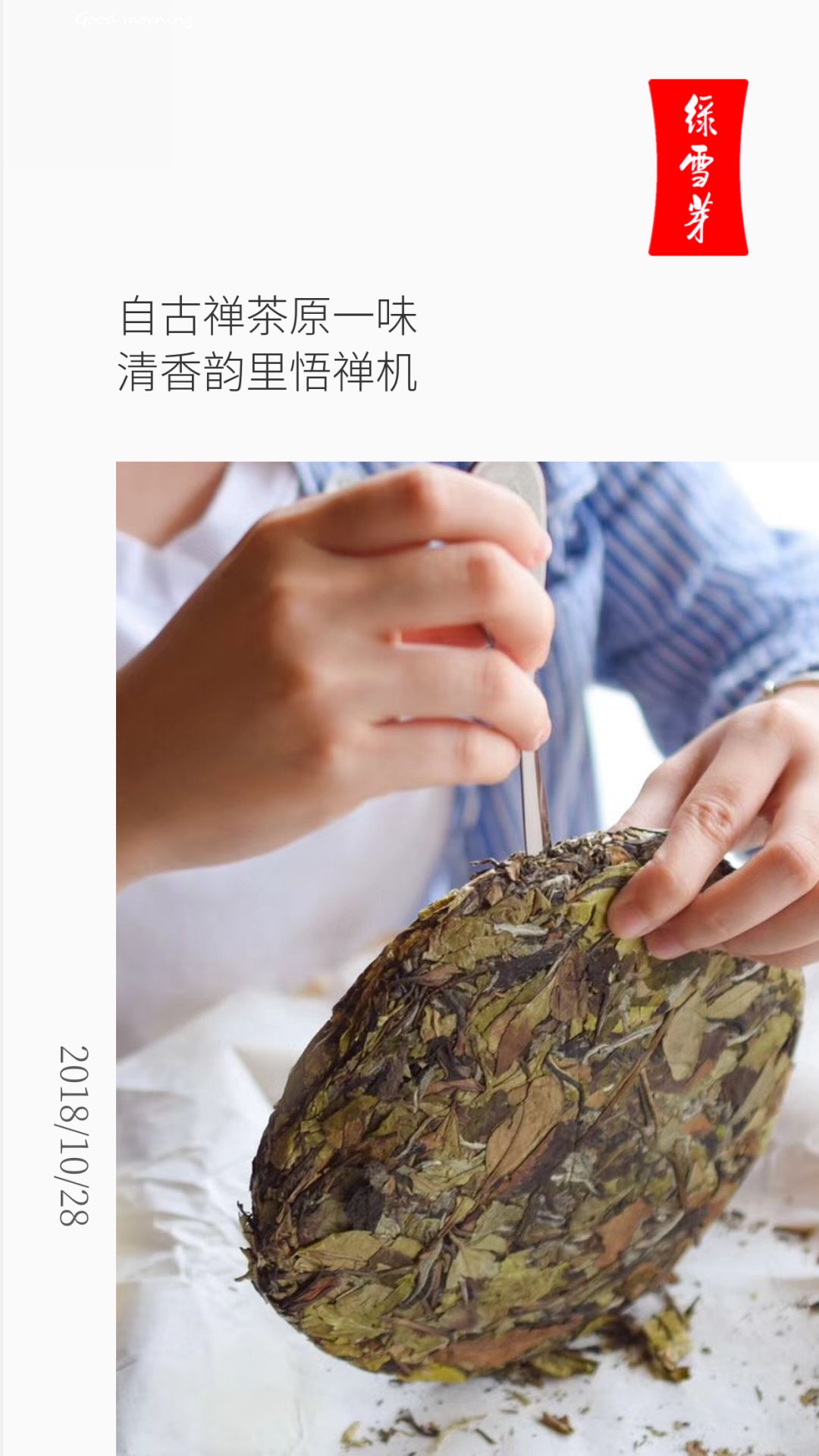 自古有“禪茶一味”之說,茶與禪的結合自唐代伊始就很興盛。當代禪門泰斗上凈下慧老和尚提出的當代禪茶文化核心精神是“正、清、和、雅”,這一精神既融合了儒家的正氣,道家的清氣,佛家的和氣,更有茶家的雅氣,決定了禪茶文化不同于哲學和倫理學的特殊的社會教育功能。而綠雪芽白茶簡樸親真的特質和自然醞化后特有的老白茶氣韻也正好與禪味相契合。