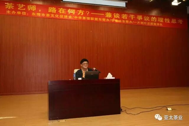 著名茶文化專家、 “中國(guó)茶文化學(xué)”首倡者與理論奠基人、“悅讀茶書會(huì)”倡導(dǎo)者與推動(dòng)者余悅近日在東莞文學(xué)藝術(shù)院,做了題為《茶藝師:路在何方?一一兼談若干爭(zhēng)議的理性思考》的講座。