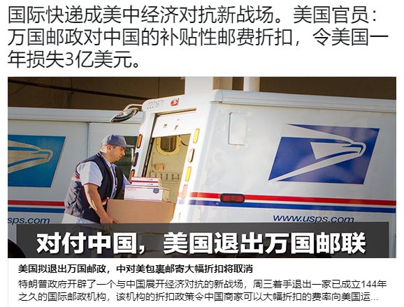 美國此舉被外界解讀為特朗普總統(tǒng)對華所采取的進一步措施。新華社在當晚發(fā)出一條快訊:美國白宮17日宣布,美國即日起啟動退出萬國郵政聯盟的程序。其后并無跟進報道及評論。