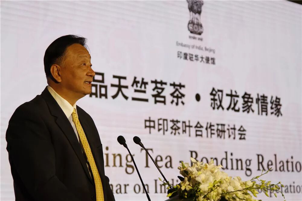 10月24日,“品天竺名茶·敘龍象情緣”中印茶葉合作研討會(huì)在京成功舉辦。中國(guó)茶葉流通協(xié)會(huì)會(huì)長(zhǎng)王慶、印度駐華大使班浩然、印度茶葉委員會(huì)副主席阿郎·庫(kù)馬·雷出席活動(dòng)并致辭。在極具印度風(fēng)情的舞蹈表演之后,印度茶商代表分別介紹了大吉嶺、阿薩姆等五種印度知名茶葉品牌,并請(qǐng)?jiān)趫?chǎng)全體人員共同品鑒。最后,經(jīng)營(yíng)印度茶已達(dá)十余年的北京東籬田園國(guó)際貿(mào)易有限公司與大家進(jìn)行了經(jīng)驗(yàn)分享。