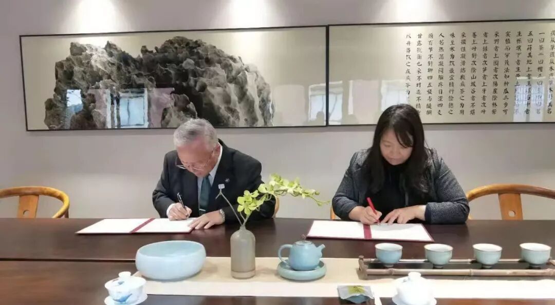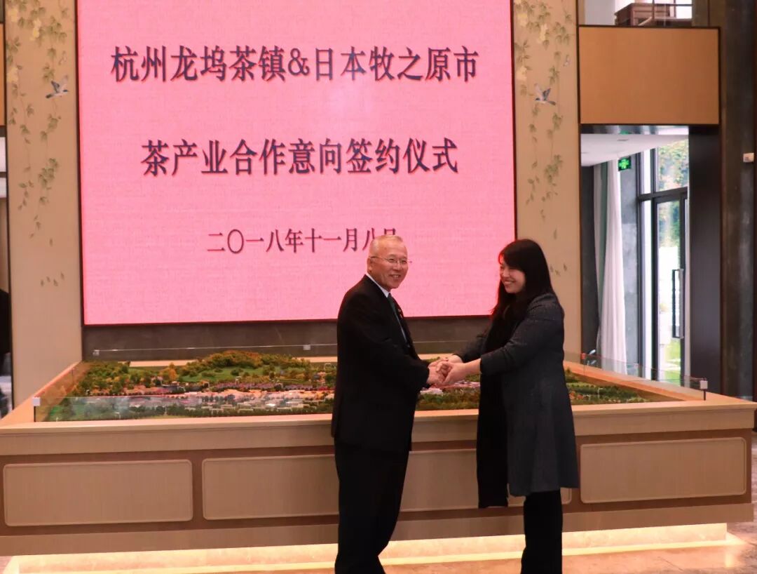2018年11月8日,日本靜岡縣牧之原市市長(zhǎng)杉本基久雄帶領(lǐng)由相關(guān)政府部門(mén)及多家茶企組成的代表團(tuán)到訪杭州龍塢茶鎮(zhèn)·九街,與杭州龍塢茶鎮(zhèn)建設(shè)管理有限公司總經(jīng)理郭玲玲簽訂茶文化·茶產(chǎn)業(yè)合作協(xié)議。