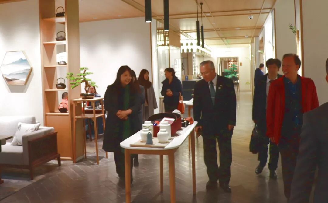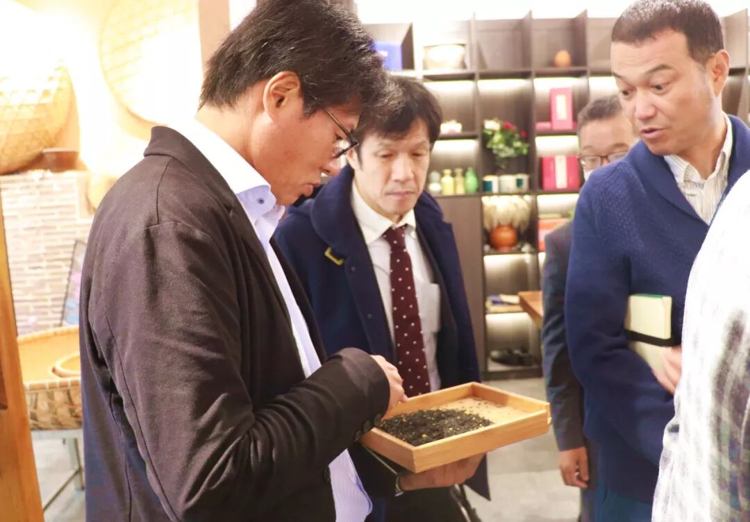 會(huì)議之后,代表團(tuán)一行參觀了新式桂花龍井創(chuàng)始人鄭小平九街御井香門(mén)店,雙方現(xiàn)場(chǎng)沖泡了日本煎茶和桂花龍井,以茶為媒介,共同交流茶的制作工藝及創(chuàng)新手法。