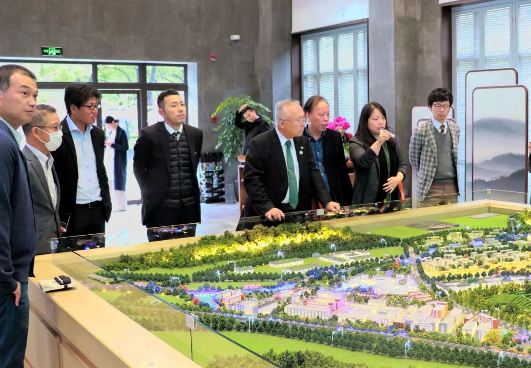 圖四:郭玲玲向(右二)杉本基久雄介紹龍塢茶鎮(zhèn)發(fā)展規(guī)劃(左五)