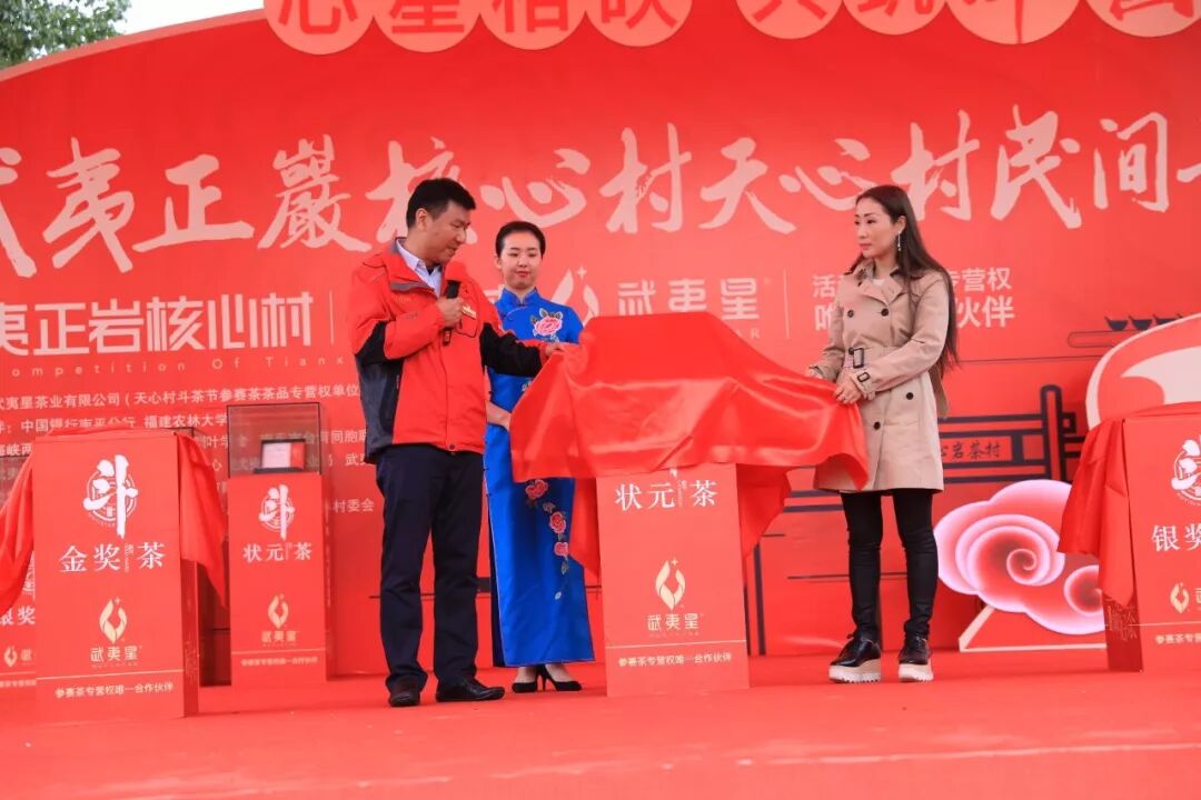 ▲東和茶葉總裁朱淑琴女士、武夷星茶業(yè)副總經(jīng)理陳實(shí)村先生共同揭幕斗茶節(jié)新包裝