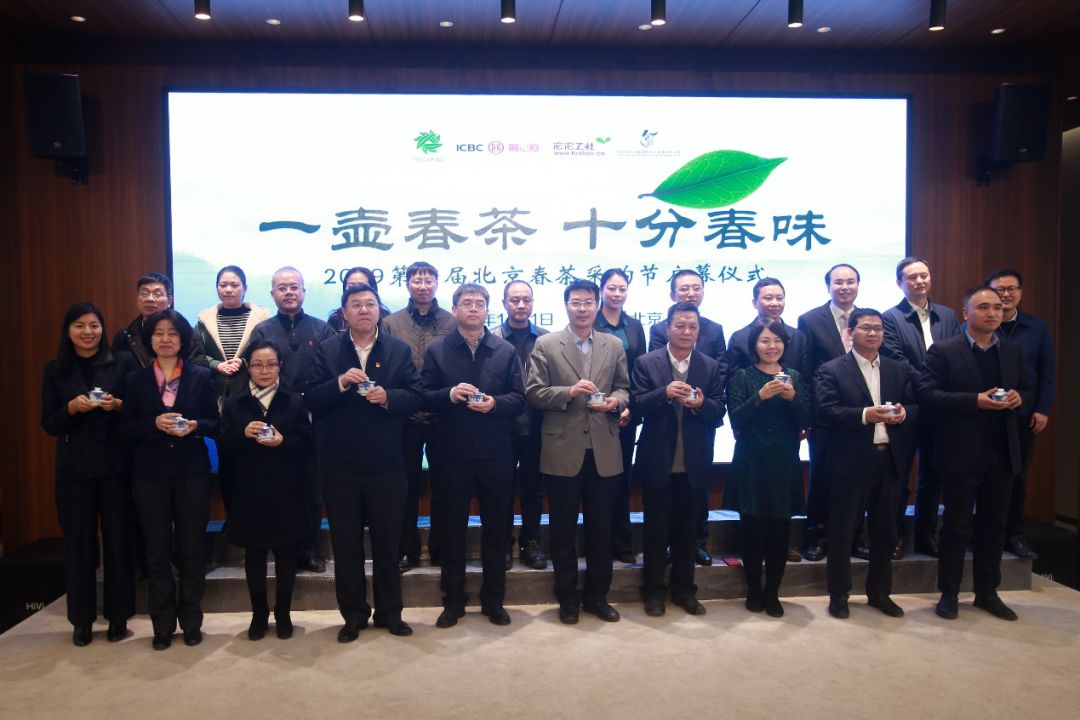 活動(dòng)現(xiàn)場(chǎng),中國(guó)紅十字總會(huì)籌資與財(cái)務(wù)部副部長(zhǎng)王海濤,中國(guó)農(nóng)業(yè)國(guó)際合作促進(jìn)會(huì)副會(huì)長(zhǎng)呂明宜,中國(guó)工商銀行網(wǎng)絡(luò)金融部副總經(jīng)理、用戶(hù)發(fā)展中心總經(jīng)理李紅燕,貴州省人民政府駐京辦副主任黃浩,中國(guó)工商銀行北京市分行行長(zhǎng)應(yīng)維云,北京馬連道建設(shè)指揮部總指揮張東,中國(guó)農(nóng)業(yè)國(guó)際合作促進(jìn)會(huì)茶產(chǎn)業(yè)委員會(huì)秘書(shū)長(zhǎng)魏有,中國(guó)工商銀行網(wǎng)絡(luò)金融部用戶(hù)發(fā)展中心市場(chǎng)部總經(jīng)理傅明仙,北京分行網(wǎng)絡(luò)金融部副總經(jīng)理孫宗群五糧液集團(tuán)工會(huì)主席楊韻霞及四川省興文縣縣委書(shū)記張健,湖北省英山縣委常委、英山縣人民政府副縣長(zhǎng)張灝,福建省周寧縣政協(xié)副主席鄭慧玫,周寧茶業(yè)局局長(zhǎng)周敦江,云南省普洱市茶葉和咖啡產(chǎn)業(yè)局局長(zhǎng)盧寒,普洱市扶貧辦副主任郭蔓華,普洱市瀾滄縣常委副縣長(zhǎng)劉元昕,貴州省貴陽(yáng)市開(kāi)陽(yáng)縣人民政府副縣長(zhǎng)張萬(wàn)新,四川省萬(wàn)源市人民政府副市長(zhǎng)文州,河南省新縣茶產(chǎn)業(yè)辦公室副主任董慧,陜西省紫陽(yáng)縣人民政府副縣長(zhǎng)田鑫,浙江省平陽(yáng)縣農(nóng)業(yè)局總農(nóng)藝師曾呈理,四川省瀘州市納溪區(qū)副區(qū)長(zhǎng)鄧小軍等共舉茶杯,宣布2019北京春茶采購(gòu)節(jié)拉開(kāi)帷幕。