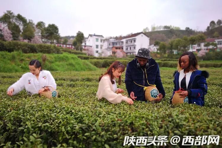 來自陜西理工大學(xué)的南非留學(xué)生丹一偉體驗(yàn)茶葉采摘。