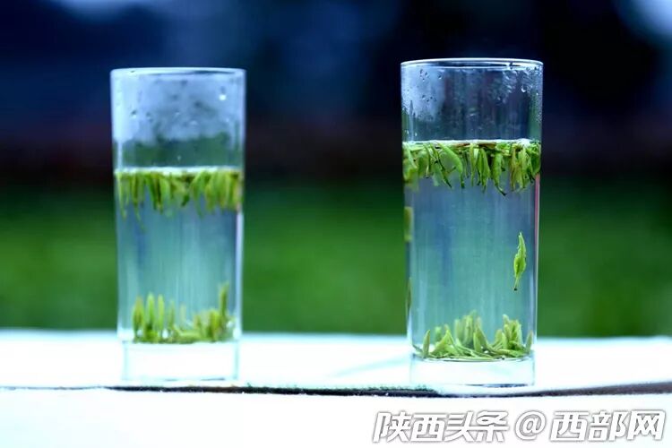 剛上市的漢中仙毫春茶沖泡后立在茶杯里。