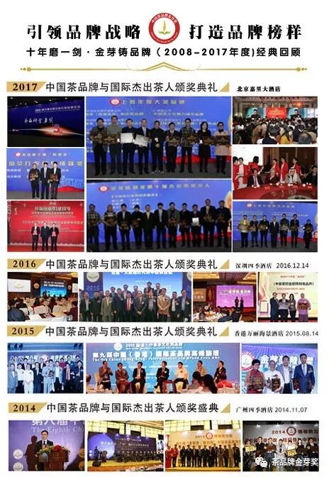 專注、選擇、堅持、聚焦是中國茶品牌金芽獎推選活動一貫秉承的商業(yè)精神與 商業(yè)氣質(zhì)。十多年間,中國茶品牌金芽獎團隊不忘初心,砥礪前進,精心策劃,服務企業(yè),樹立典范,鼎力推廣。平臺本著“融合優(yōu)勢茶企業(yè),打造核心茶品牌”的戰(zhàn)略目標,以培育具有全球市場競爭力與國際影響力的中國創(chuàng)新茶品牌為己任,是凝聚國際杰出貢獻茶人精神與中國標桿茶品牌展示的高端平臺。十年磨一劍,金芽鑄品牌。目前已是中國茶界最具影響力與持續(xù)力的茶品牌標準化系統(tǒng)推廣工程,被譽為中國茶界品牌的“奧斯卡”!