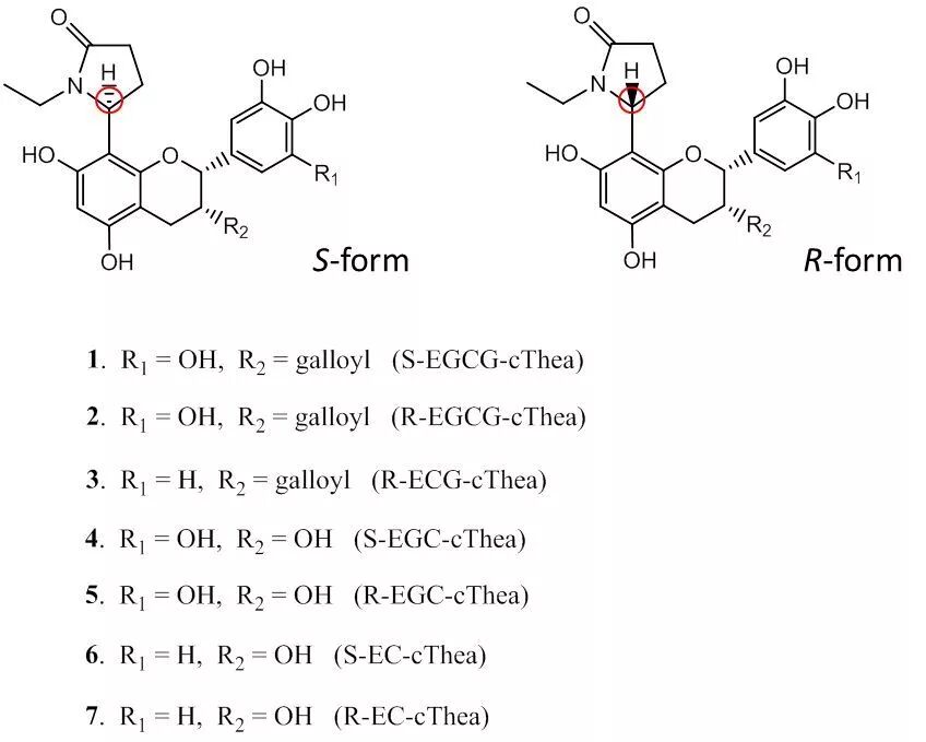 準(zhǔn)確說(shuō):老白茶酮 ≈ EPSF類(lèi)物質(zhì)。研究者在老白茶中共發(fā)現(xiàn)EPSF物質(zhì)有7種化合物,故稱(chēng)之為EPSF類(lèi)物質(zhì)。“老白茶酮”學(xué)名全稱(chēng):8-C N-乙基-2-吡咯烷酮取代的黃烷-3-醇,英文縮寫(xiě)為EPSF。