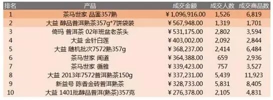 大益在普洱類單品成交中前十名占據(jù)5席,成為了最大贏家。對比去年,大益只有2款,