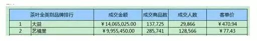 對比兩年數(shù)據(jù),可以看到,“網(wǎng)紅“代表的藝福堂,成交人數(shù)和成交金額都不增反降,而大益代表的傳統(tǒng)品牌,無論成交人數(shù)和成交金額的增幅卻依然保持穩(wěn)健,且增幅明顯。