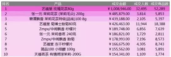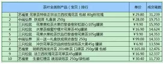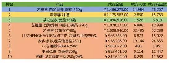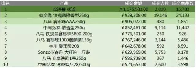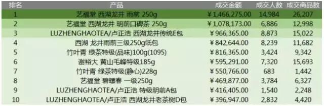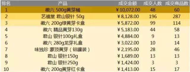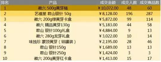 ▎單品銷售排行:傳統(tǒng)品牌茶企電商影響力日漸擴大