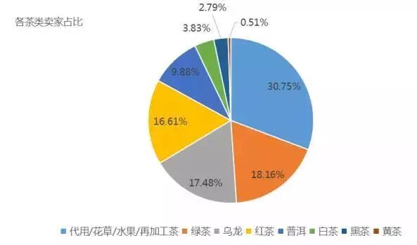 ▎茶類占比:普洱、烏龍、紅茶位列前三