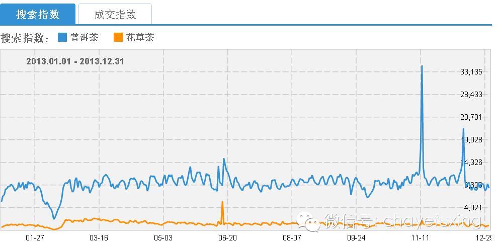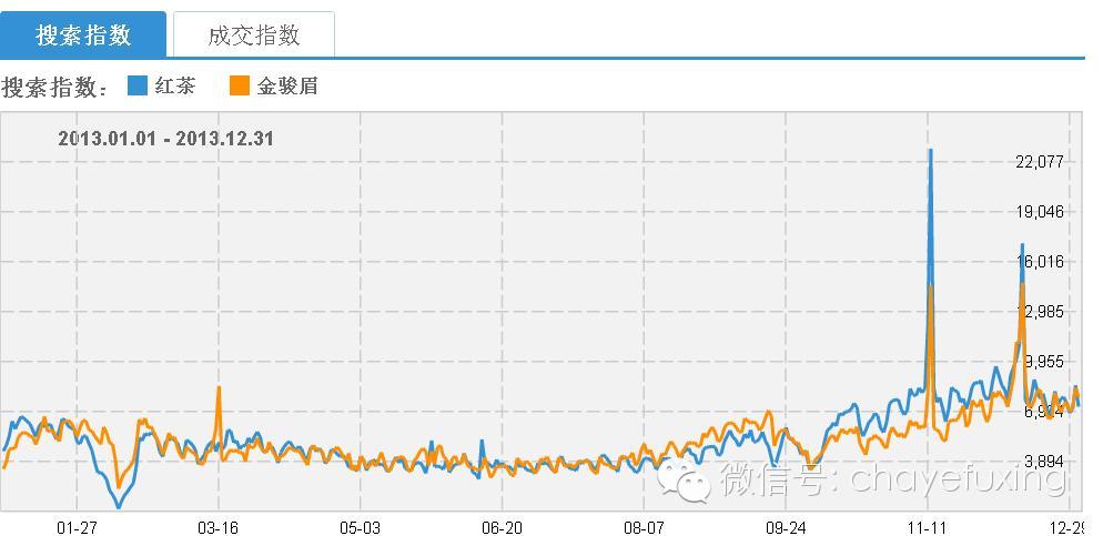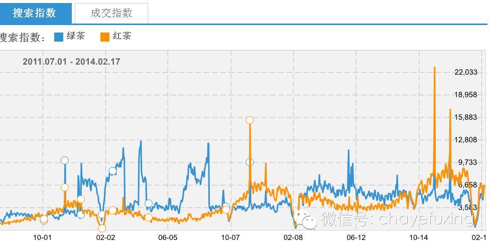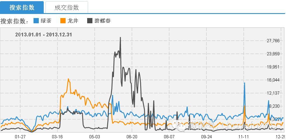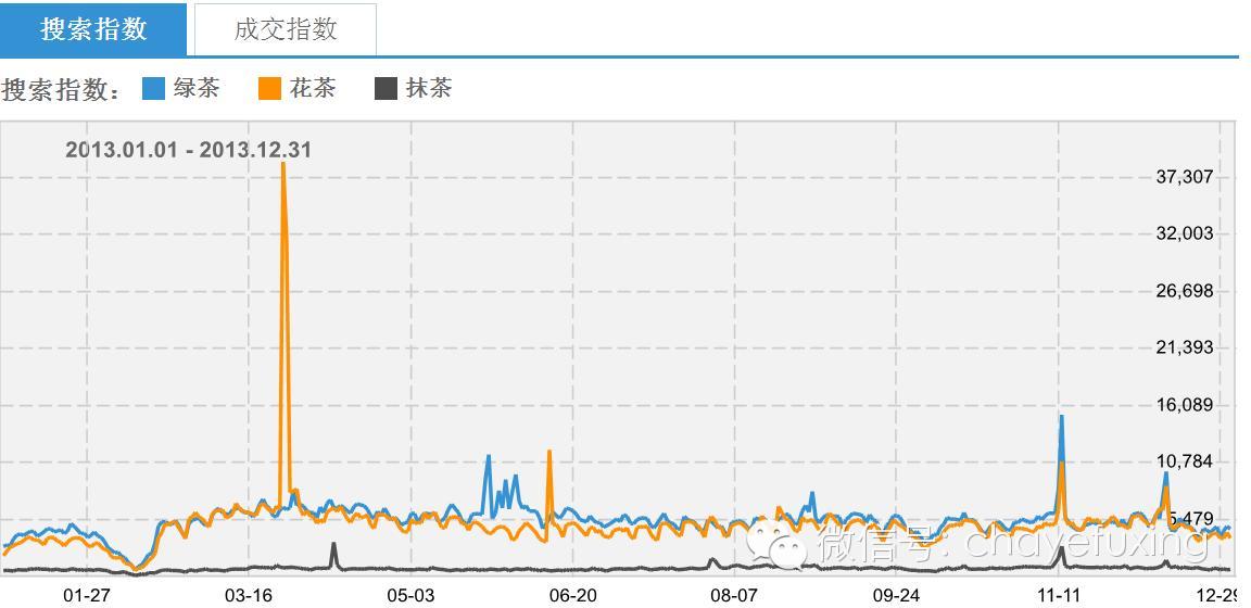 從曲線中不難發(fā)現(xiàn),綠茶在2012年把紅茶壓在身下,但是到了2013年,紅茶已經(jīng)快把綠茶拉下馬了。