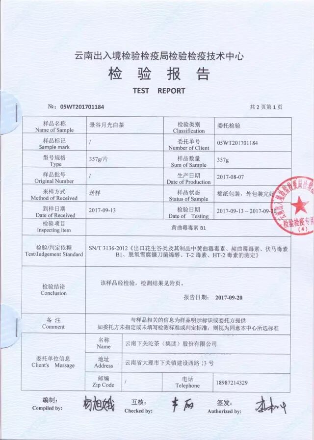 為用數(shù)據(jù)說(shuō)話,還原科學(xué)真相,農(nóng)業(yè)產(chǎn)業(yè)化國(guó)家重點(diǎn)龍頭企業(yè)云南下關(guān)沱茶(集團(tuán))股份有限公司于2017年9月12日依照抽樣規(guī)范抽取了公司生產(chǎn)的25個(gè)產(chǎn)品,并委托云南出入境檢驗(yàn)檢疫局檢驗(yàn)檢疫技術(shù)中心大理分中心進(jìn)行黃曲霉毒素B1檢測(cè)。經(jīng)檢測(cè),16只普洱生茶樣品、8只熟普洱茶樣品和1只白茶樣品中均未檢出黃曲霉毒素B1。