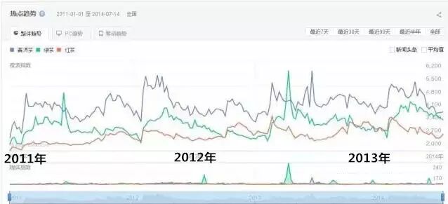 “普洱茶”與“綠茶”“紅茶”的搜索指數(shù)對(duì)比