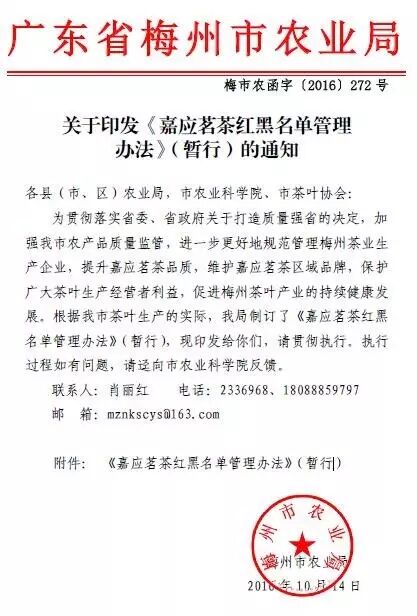 為了響應(yīng)廣東省委省政府關(guān)于打造質(zhì)量強(qiáng)省的號(hào)召,規(guī)范和管理梅州茶葉生產(chǎn)企業(yè),提升嘉應(yīng)茗茶品質(zhì),打造嘉應(yīng)茗茶品牌,促進(jìn)梅州茶葉產(chǎn)業(yè)的持續(xù)健康發(fā)展,以更好地保護(hù)提升區(qū)域品牌,保護(hù)廣大茶葉生產(chǎn)經(jīng)營(yíng)者利益。近日,梅州市農(nóng)業(yè)局發(fā)布《嘉應(yīng)茗茶紅茶名單管理辦法》(暫行)。