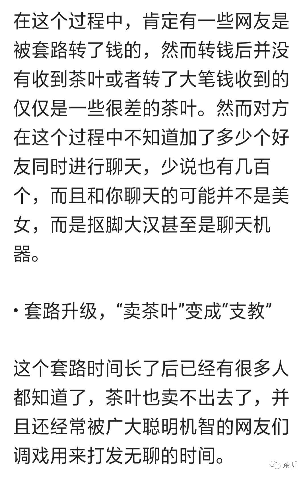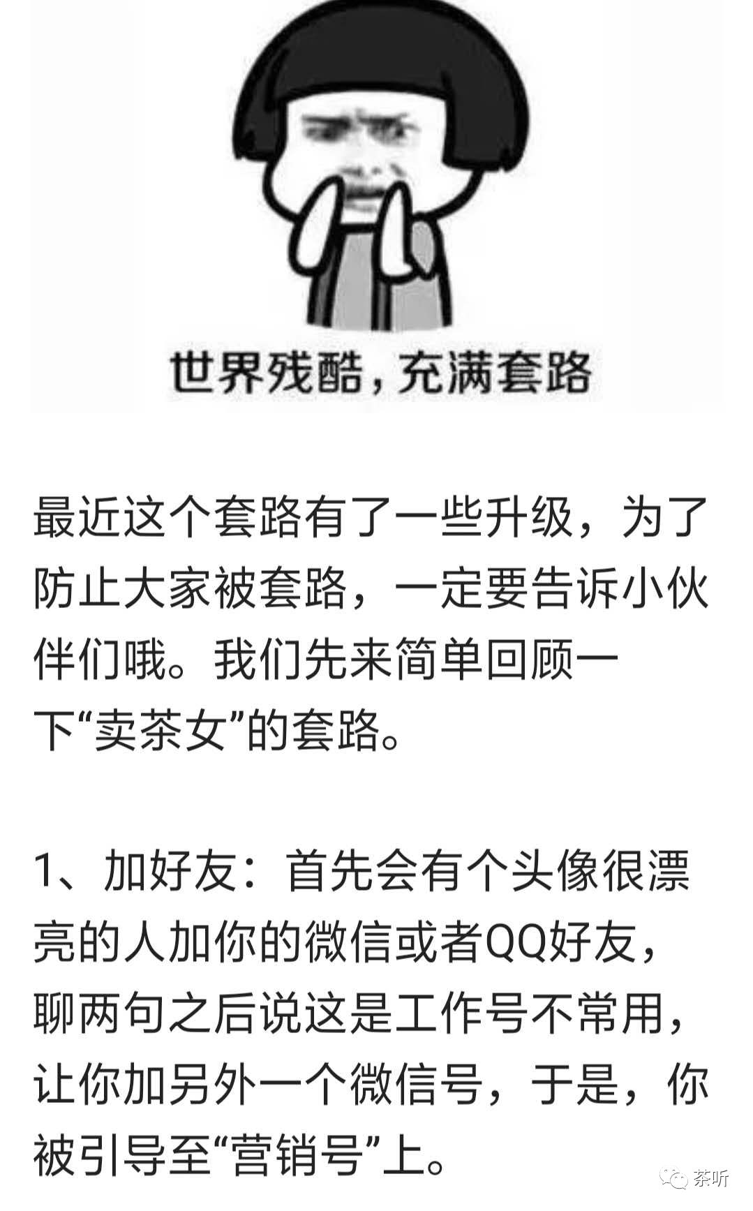 在今年上半年給大家分享過一個微信“賣茶女”的套路(騙局),這個騙局已經(jīng)出現(xiàn)很久了。我自己也遇到過好幾次了,很多小伙伴也都有遇到過。我查了下,有不少的比較老實的人成功的被騙。