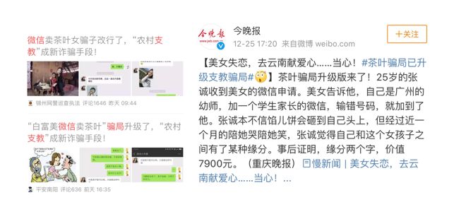 各大媒體報道,微信“賣茶女”套路升級!大家要注意啦