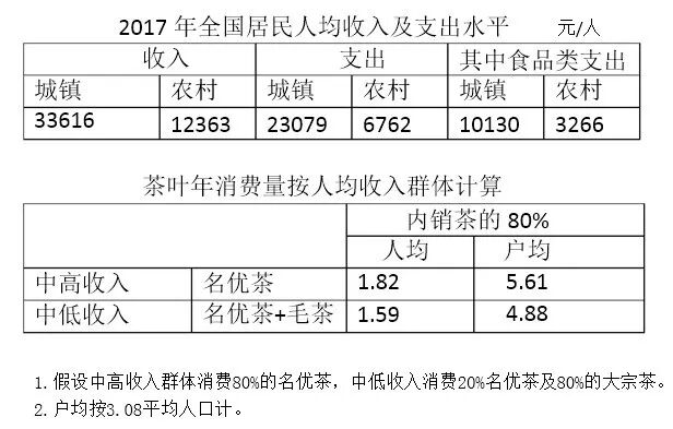 最近拼多多 3 億多用戶也從側(cè)面反映出全國居民的消費(fèi)水平并不很強(qiáng),還有一大波人處于貧困或者溫飽階段。這一部分人不是茶葉消費(fèi)的主體,尤其不是高價(jià)茶的消費(fèi)主體。這 3 億多人口基本上也應(yīng)該是就業(yè)人口,如果從就業(yè)人口中再考慮剔除這一部分群體,則購茶主體為 47640 萬人,按這部分人消費(fèi)茶葉 80%計(jì),則人均茶葉消費(fèi)達(dá)到 3.19 kg,因此這一結(jié)果從另一個(gè)角度證明茶葉的內(nèi)銷已經(jīng)達(dá)到一個(gè)很高的水平,增長潛力已無。