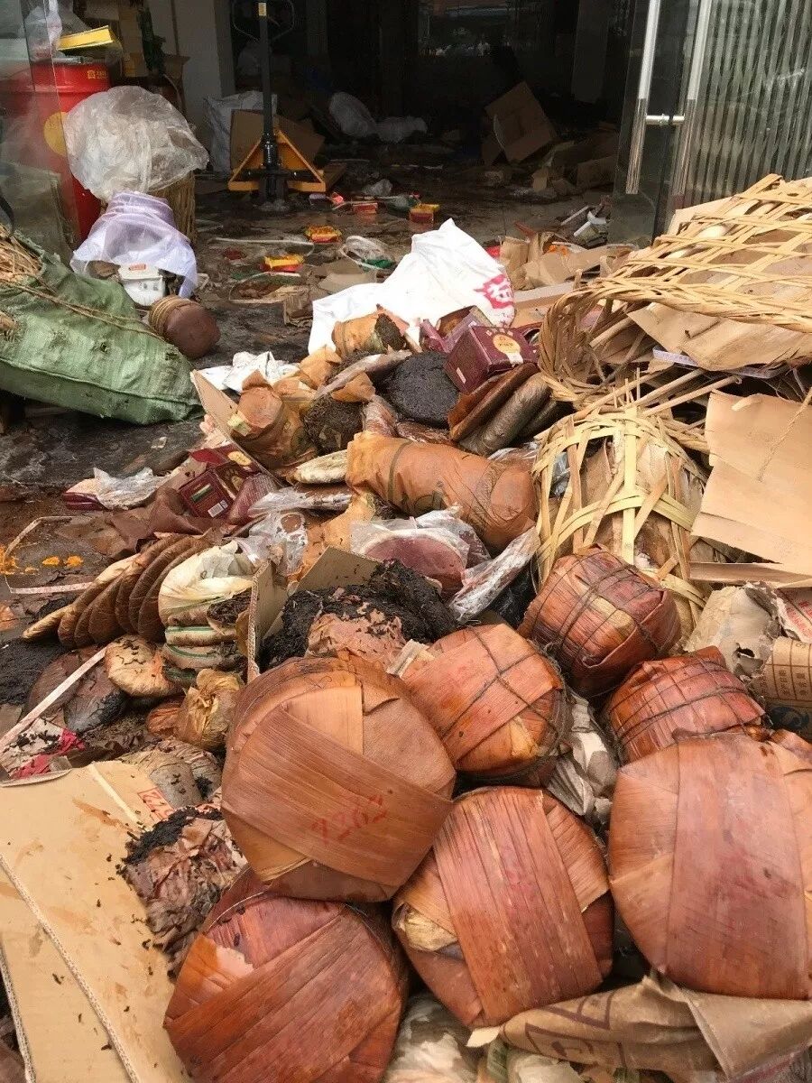 而部分茶葉市場的商鋪,或因未曾遭遇過水患,在毫無防備與警惕的情況下,其擺放于檔口的茶品或全軍覆沒。