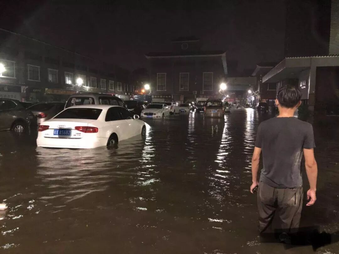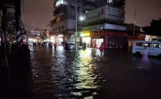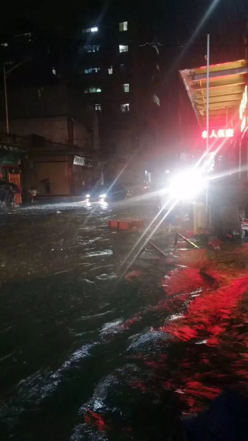 最高峰是九點鐘的時候,江水倒灌全部都淹沒了。
