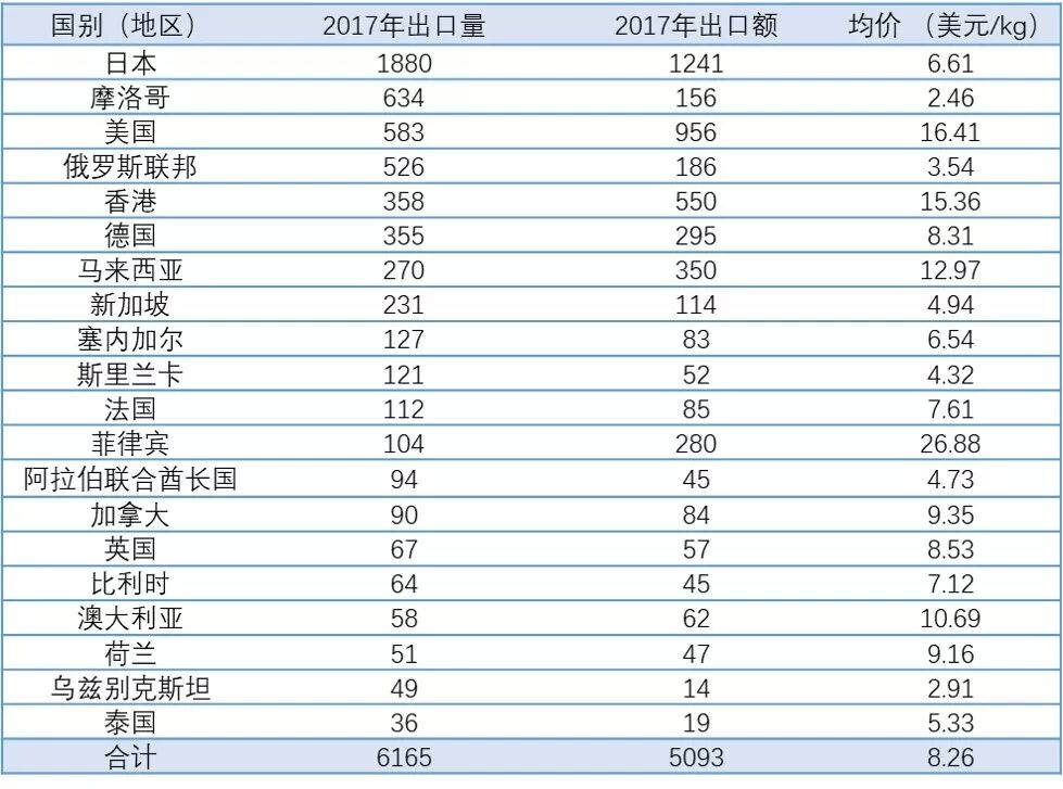 2017年中國(guó)花茶出口概況(單位:噸/萬(wàn)美元)