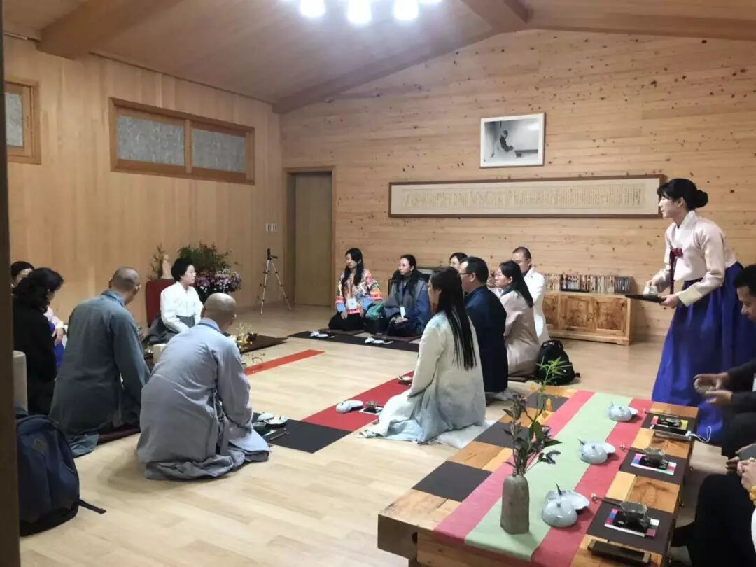 24日,大會(huì)從首爾移師釜山弘法寺,中日韓三國(guó)僧俗兩界茶人云集于此舉行規(guī)模盛大的百家茶席·千人茶會(huì),三國(guó)茶人紛紛展現(xiàn)了茶禮、茶道、茶藝的行茶過(guò)程。閉幕式由釜山弘法寺住持深山法師主持。閉幕式上,中日韓三國(guó)再次作禪茶演示交流。