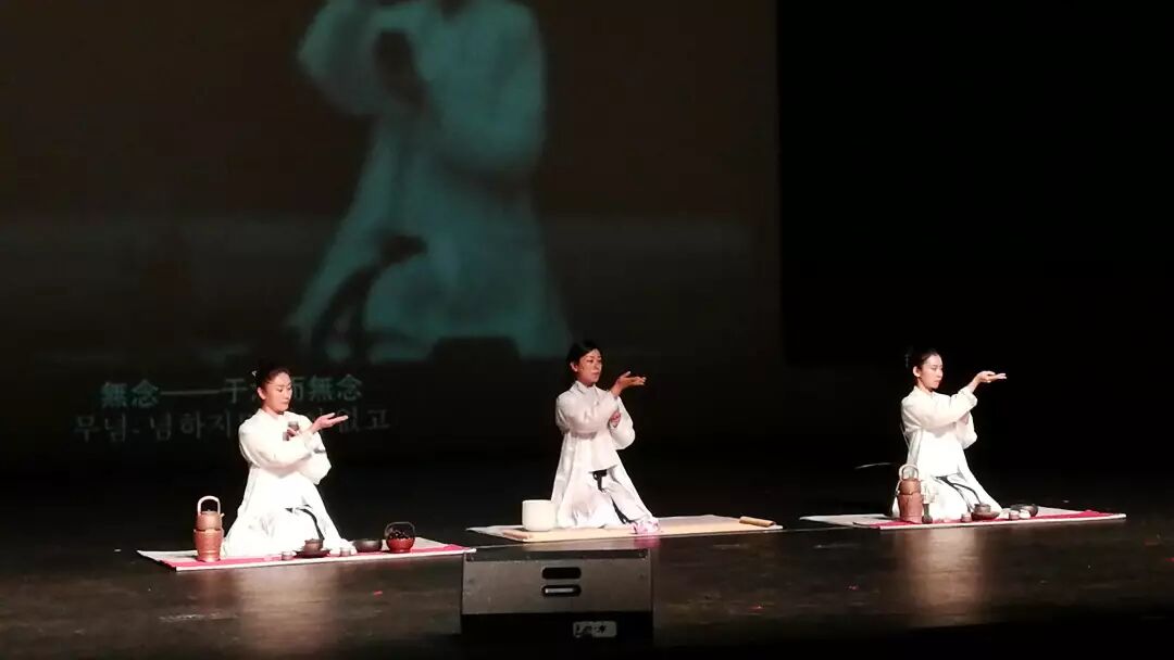 10月23日下午進(jìn)行中日韓三國(guó)禪茶公演交流,12臺(tái)禪茶演示節(jié)目在眾人的期盼中,終于在韓國(guó)首爾永登浦藝術(shù)廳閃亮登場(chǎng)。在這12臺(tái)禪茶演示節(jié)目中,由《吃茶去》雜志社與河北省茶文化學(xué)會(huì)聯(lián)合推薦和選送的《茶叩無(wú)門》,在三位茶館業(yè)主的精湛演示下震撼了所有參會(huì)代表。這臺(tái)由著名茶文化專家舒曼創(chuàng)編——以啟悟人心、啟迪心靈的《茶叩無(wú)門》贏得了與會(huì)代表一致好評(píng)。禪茶演示結(jié)束后,在主辦方的邀請(qǐng)之下,《茶叩無(wú)門》禪茶演示第二次亮相當(dāng)晚在首爾希爾頓酒店舉行的歡迎晚宴舞臺(tái)上,禪茶演示選擇了福建福鼎仙蒲村“吾蒲白茶”進(jìn)行沖泡。
