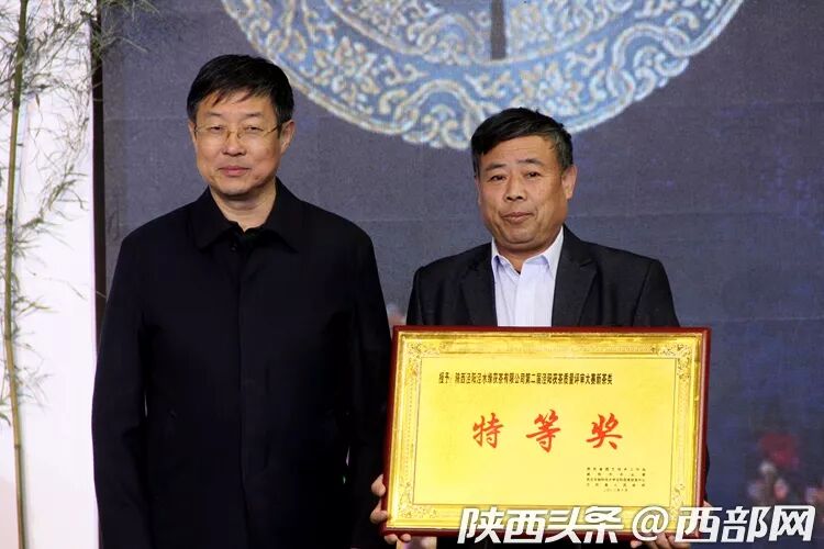 與會(huì)領(lǐng)導(dǎo)為第二屆涇陽茯茶質(zhì)量審評大賽獲獎(jiǎng)企業(yè)頒獎(jiǎng)。