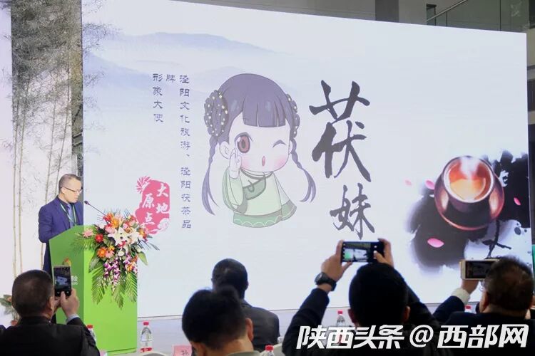 涇陽縣委宣傳部常務(wù)副部長閆靜亞推介涇陽旅游形象大使、涇陽茯茶品牌形象代言人“茯妹”。