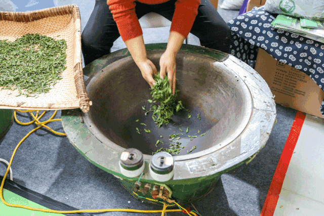 攜著茶香一路走走停停,忽然被一陣濃郁的茶香所吸引,尋香而來,竟是現場炒起了茶葉,沁人心脾的香味讓人紛紛駐足,舍不得離開這份香。