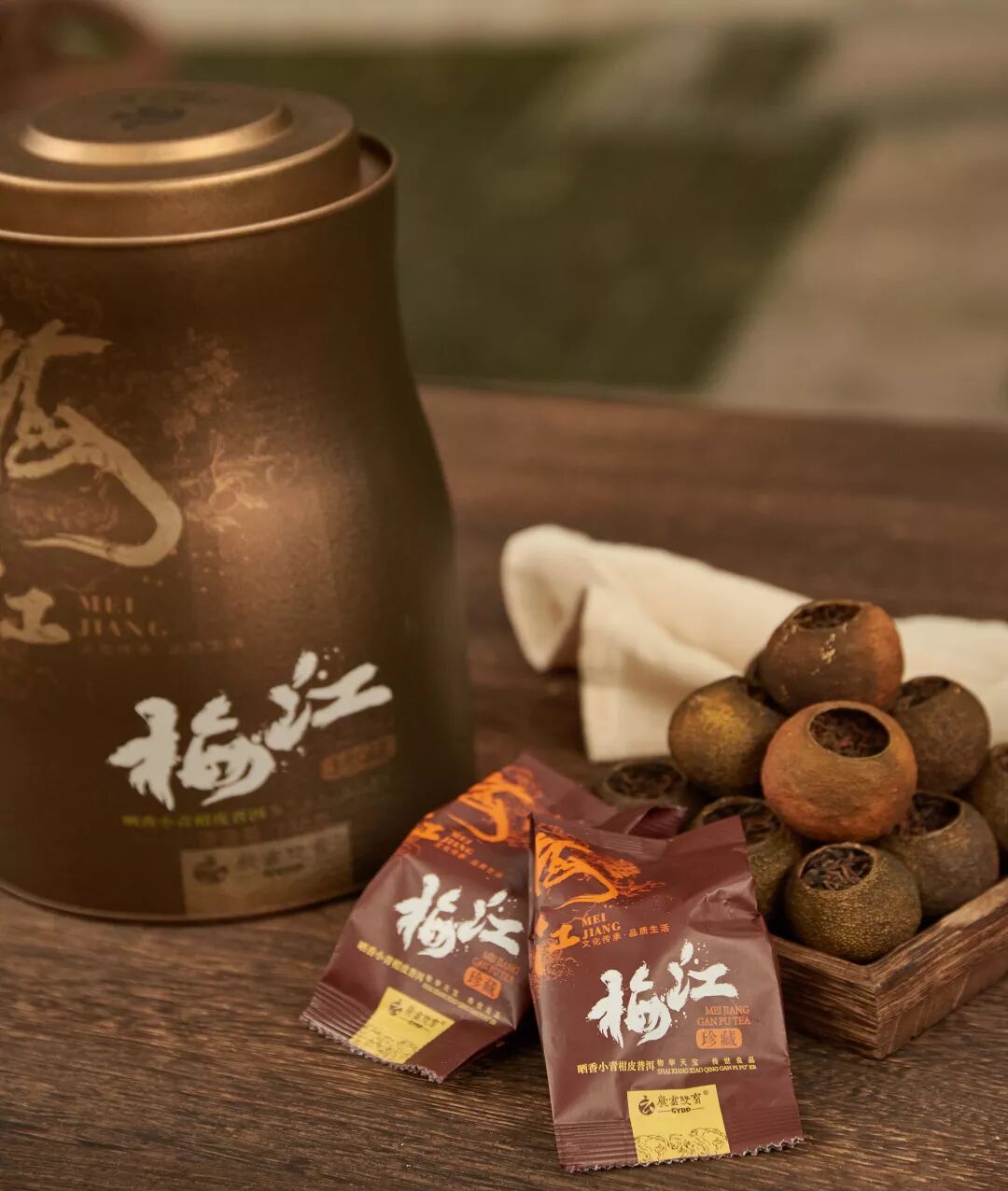 2018年珍藏梅江小青柑(曬香型),嚴(yán)格挑選具有十年以上樹齡的老樹柑柑果,拼配勐海大葉種早春茶,經(jīng)過(guò)獨(dú)特的發(fā)酵技術(shù)制作而成的10年宮廷小金芽熟普,溢滿花香的普洱茶與濃郁果香的梅江小青柑,相融相生,釋放出色澤油亮而濃郁的茶湯。