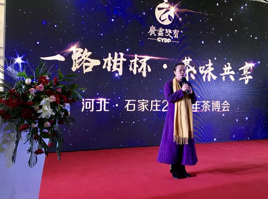 精彩的表演過(guò)后,廣云雙寶河北總代理???/strong>上臺(tái)致辭:除了感謝各位茶友的到來(lái),更重要的是與茶友分享她對(duì)廣云雙寶的認(rèn)識(shí),同時(shí)闡述了對(duì)整個(gè)柑茶行業(yè)的見(jiàn)解和分析;并且說(shuō)到選擇我們廣云雙寶這個(gè)品牌,是因?yàn)閷?duì)廣云雙寶的品質(zhì)認(rèn)可。