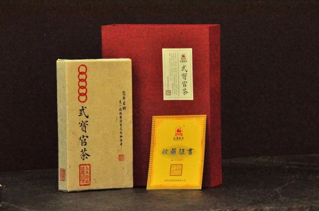 三寶官茶,據(jù)傳是明末茯茶行銷領(lǐng)袖木士元根據(jù)貴族需求秘制的一款茯茶,工藝非常復(fù)雜。需精選三種不同季節(jié)存放三年的優(yōu)質(zhì)原料按比例拼配,加注特別熬制的釉水,歷經(jīng)長達(dá)三個(gè)月的發(fā)花周期而成。每年陽正端午開始筑制,夏至日落前入烘房,月圓中秋子夜前出烘,“始太陽端午之日長,成少陰中秋之月滿”,陰陽相輔,集寶萬福,為陜西傳統(tǒng)茯茶的上上之作。