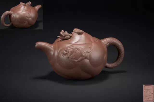 壺的造型構(gòu)思巧妙,魚、龍、云的裝飾與壺身渾然一體。通身作海水波浪狀,線條流利, 簡(jiǎn)潔明快。魚龍吐珠、神韻生動(dòng)。壺蓋安裝的龍首伸縮自如,優(yōu)美靈活。配以龍尾執(zhí)柄奇趣極生。清代嘉慶、道光、咸豐時(shí)期,經(jīng)過邵大亨的精心設(shè)計(jì),“魚化龍壺”成為一種成熟并廣泛流傳的經(jīng)典紫砂壺壺型。