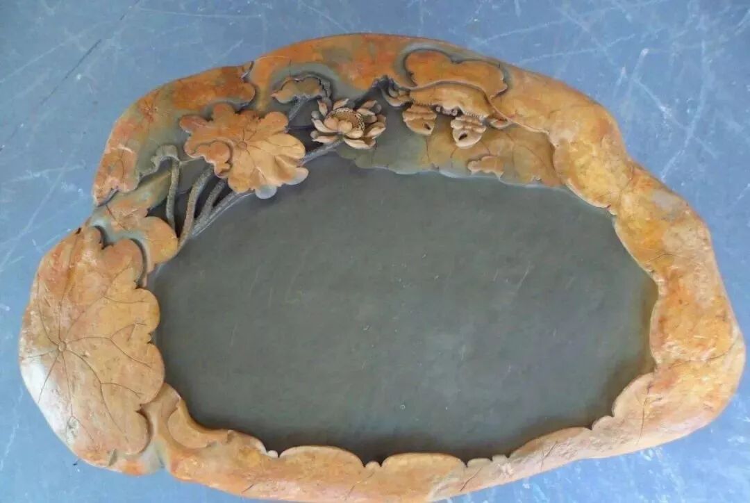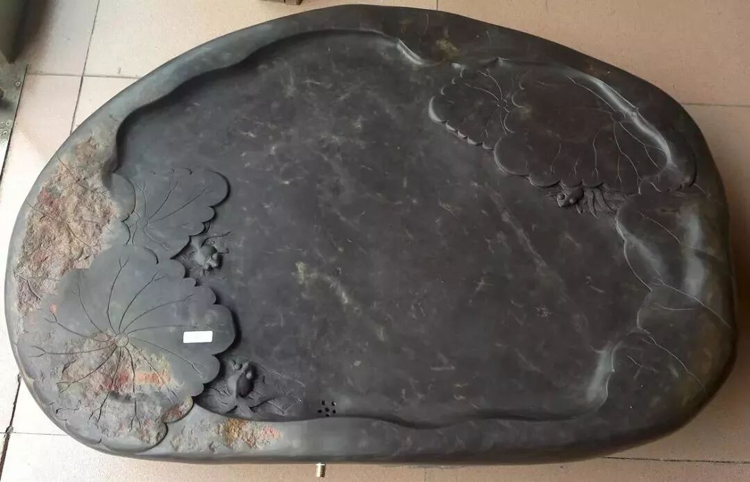 由于端硯石質(zhì)與水相親,濕水后猶為晶瑩剔透、溫潤如玉、細膩而潤滑,因此制成茶盤,猶為合適。