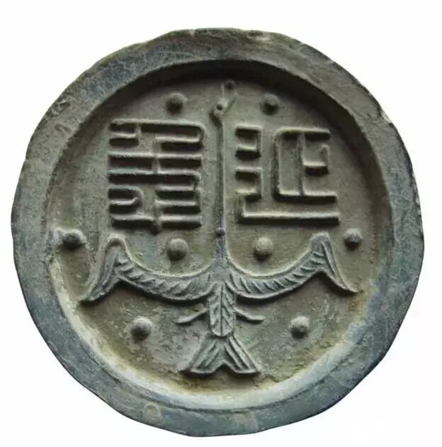 瓦當(dāng)上有“延年”兩字,字體處于篆隸之間,下為一伸頸展翅之飛鴻,在飛鴻及延年之間有對稱分布的八個(gè)乳釘,還有飛鴻張嘴欲銜的一個(gè)小乳釘。