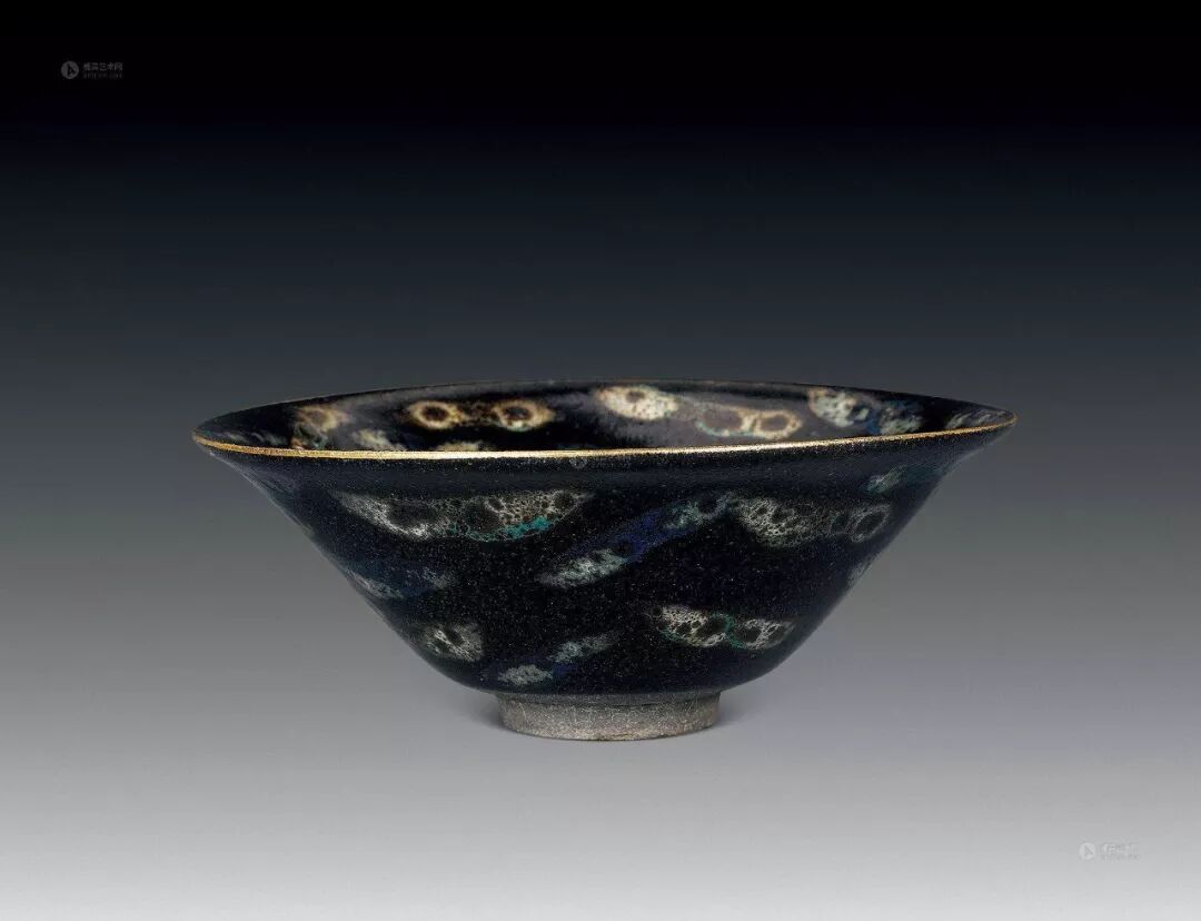 ? ? ? 油滴盞顧名思義,黑色的釉面上有金屬光澤的圓點(diǎn),如不小心滴了幾滴油在上面。一流的油滴盞,油滴隨著光線變化色彩,如星空墜入盞中,熠熠生輝卻不刺眼。