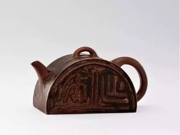 清中期 陳曼生銘曇摩迦室款紫泥半月瓦當(dāng)壺
