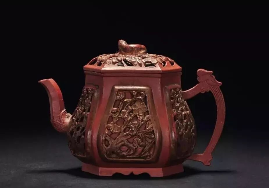 鏤空裝飾手法非常古老,早在七千多年前的新石器時代,就在陶器上出現(xiàn)了。紫砂鏤雕,始于明末清初,流行于清康熙、雍正、乾隆時期。