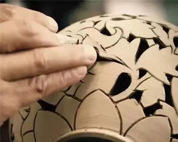 鏤空紫砂壺造型各異,工藝精湛。紫砂鏤雕,有雙層與單層之別。在雙層或單層的坯體上,藝人先設(shè)計規(guī)劃好所需要的圖案,合理布局,無論人物、山水、書法、詩詞內(nèi)容,都能按藝人的設(shè)計要求達到理想效果。