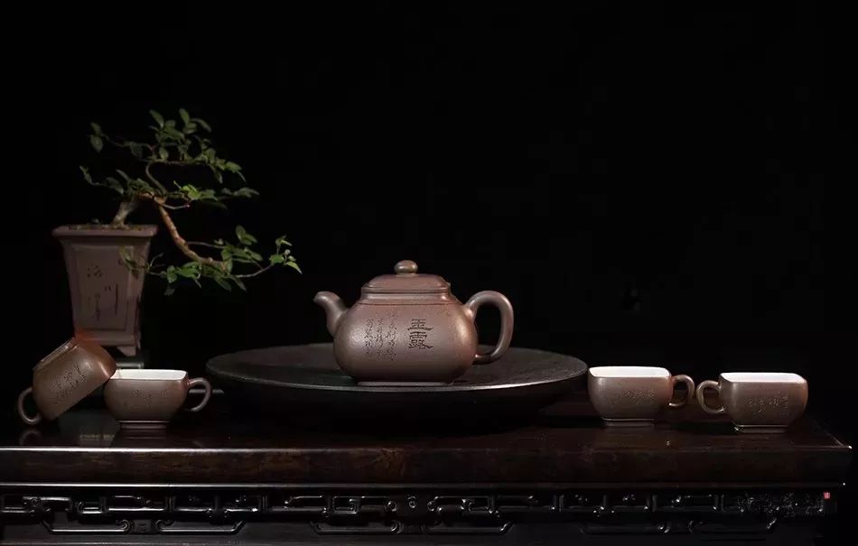 實際上我們在購買紫砂壺時,幾乎都是單壺,本就是沒有杯子的;而套組配的杯子,則是與壺主題呼應的,二者是有聯(lián)系的,從形體到裝飾都是稱和的,并不是隨便一個單壺再給兩個杯子就是套組了。
